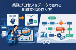 はじめに DXを推進しようとしているのに、議論が前に進まない——そんな経験はないでしょうか。改革の必要性は経営層も現場も共有しているはずなのに、「どの業務に問題があるのか」「非効率がどこで発生しているのか」が定量的に示せ […]