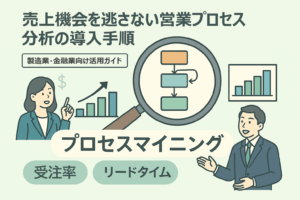 なぜ営業プロセスの可視化が求められるのか 「商談はそれなりにあるのに、なぜか数字が伸びない」「営業現場からは"がんばっている"という声が上がる一方で、受注率やリードタイムの実態がつかめない」──製造業・金融業の経営層や営 […]