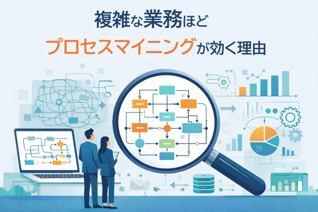 業務の複雑化は成長の証でもありますが、放置すれば競争力低下につながります。プロセスマイニングは、この見えない複雑さを可視化し、改善につなげるための強力な手段です。