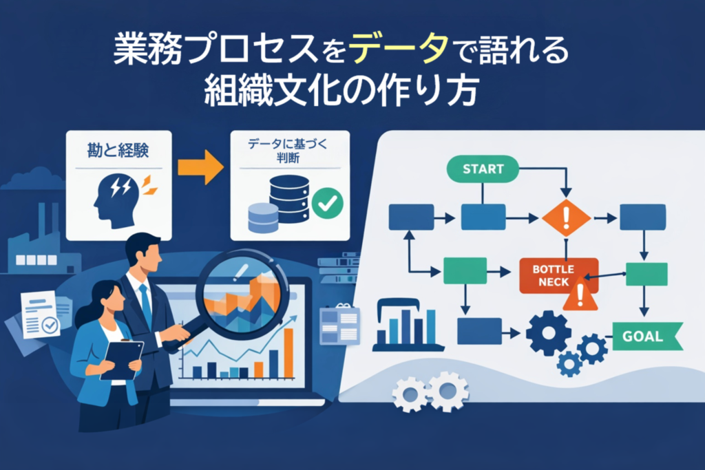 DXを推進しているはずなのに、会議室での発言は今も「たぶん」「現場感では」「以前もそうでした」という言葉で埋まっていないでしょうか。多くの企業が直面している本質的な問題は、データの不足ではありません。業務プロセスを意思決定に結びつける「共通言語」が存在しないことにあります。